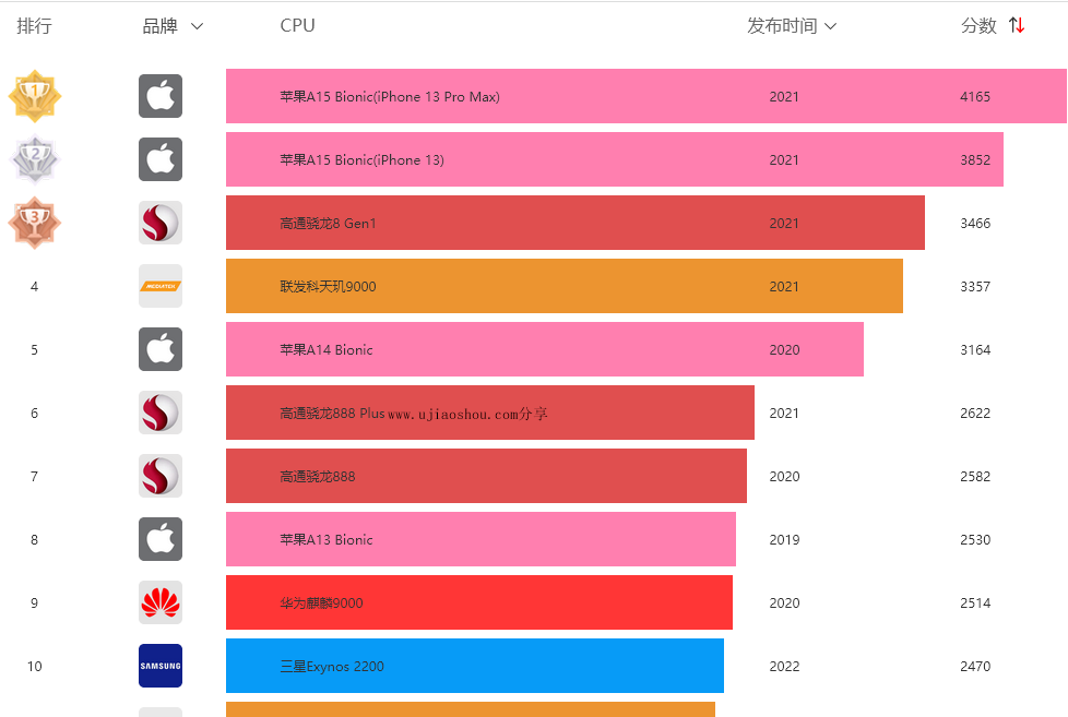 手机处理器性能排行榜2022新版