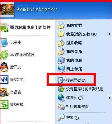 1.以xp系统为例说明,进入系统桌面,点击开始按钮,在开始菜单中选择控制面板进入。