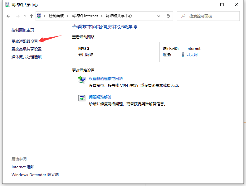 1、进入控制面板--网络和 Internet--更高适配器设置。查看网络连接。