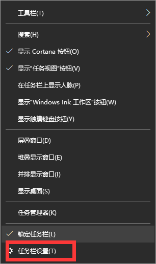 1、右键单击任务栏空白处,选择任务栏设置,进入页面。