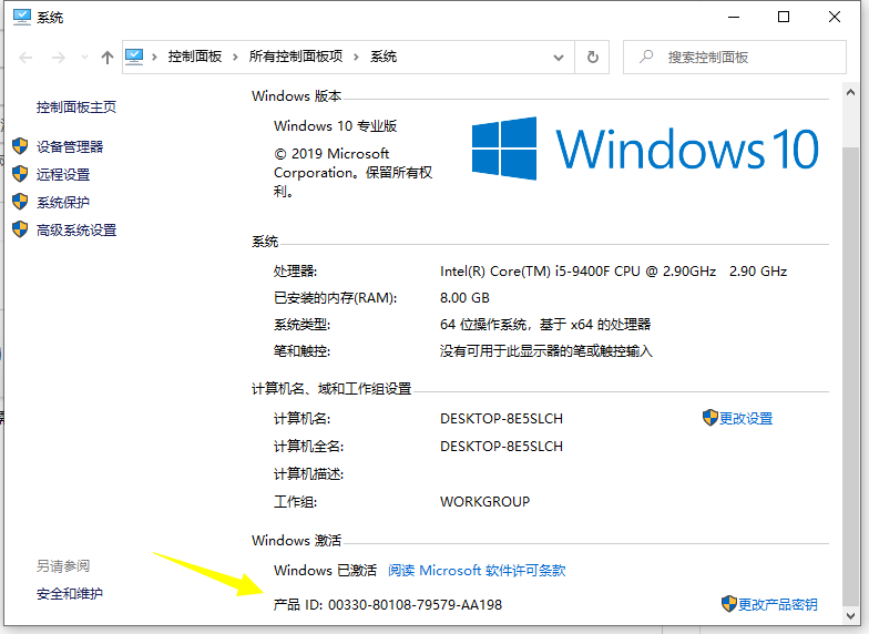 1、右键单击“此电脑”,选择“属性”,在打开的窗口的下方即可看到激活码,即产品ID。