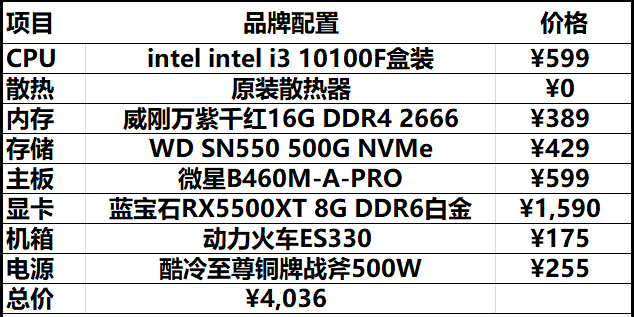 以上便是2021年4000价位最强组装电脑配置清单详细介绍,大家可以参考下哦。