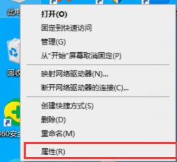 1.首先我们打开桌面,右键点击win10系统上的此电脑,选择“属性”选项。