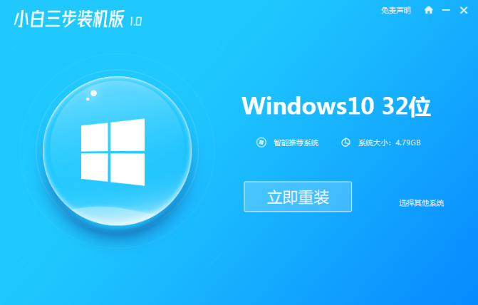 1、打开【小白三步装机版】工具,在页面中选择需要安装的系统,点击【立即重装】。