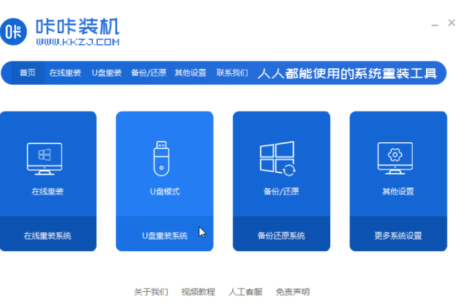 1.从其他计算机上下载咔咔装机软件,然后将u盘插入计算机。