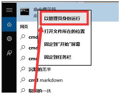 1.进入win10专业版系统后,单击桌面左下角的搜索按钮,输入cmd,然后右键单击鼠标命令符号,选择作为管理员进入下一步。
