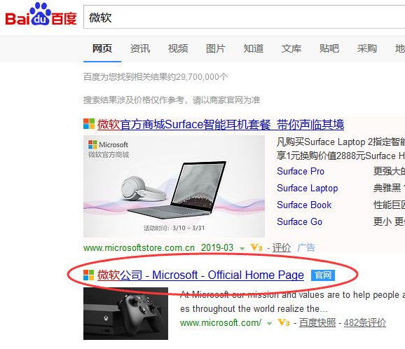 1、微软官方网站下载镜像,通过百度搜索查找微软官网