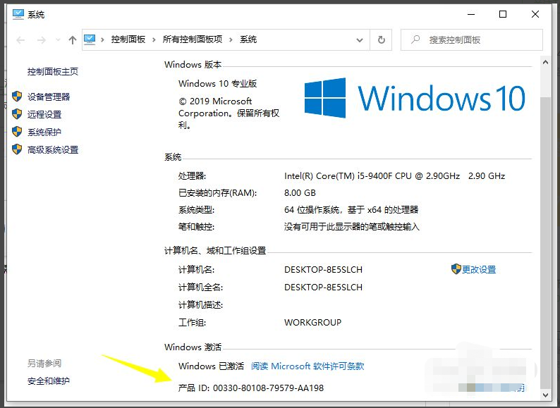 1、右键单击“此电脑”,选择“属性”,在打开的窗口的下方即可看到激活码,即产品ID。