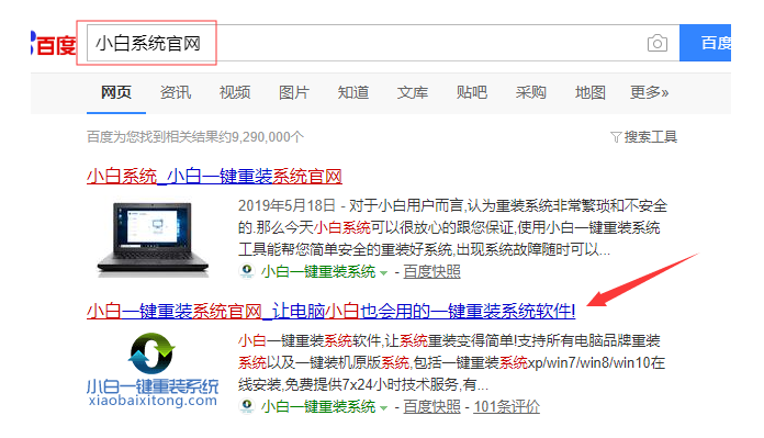 1、准备重装系统的软件,小编习惯使用小白一键重装,搜索“小白系统官网”,在官网内下载小白一键重装。