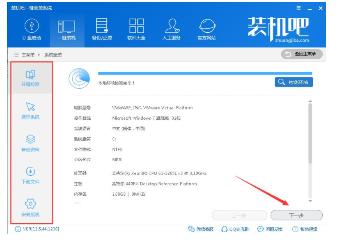 软件版本:装机吧一键重装系统软件v11.5.44.1230