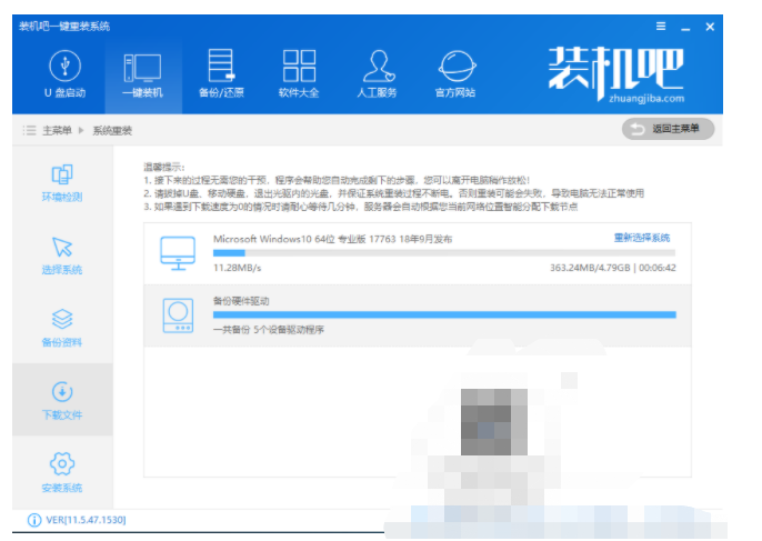 5.然后装机吧软件会自动开始下载win10系统并做相应的备份工作。