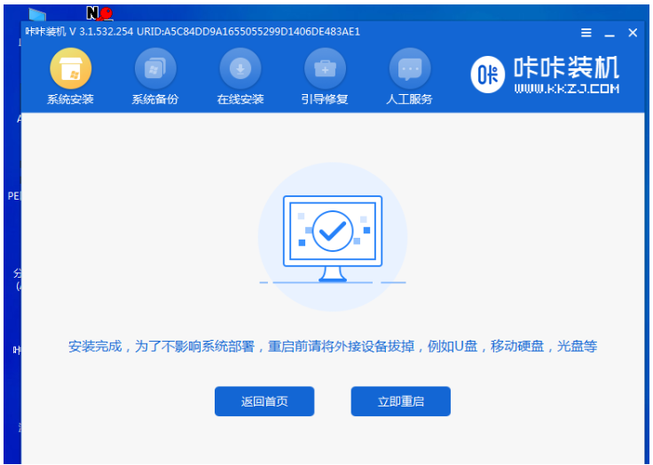 5.然后我们打开pe系统桌面上的卡卡安装软件,选择win10系统点击安装选项。