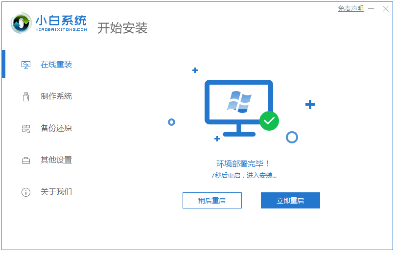 4、下载完毕后,进入环境部署,部署完成后,点击立即重启。