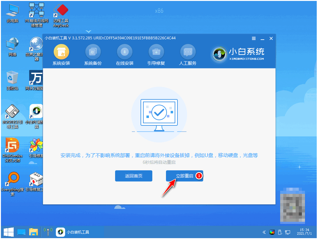 8、安装完成后,手动拔掉U盘,点击立即重启。