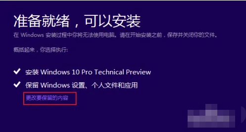 4.在开始安装之前,点击“更改要保留的内容”