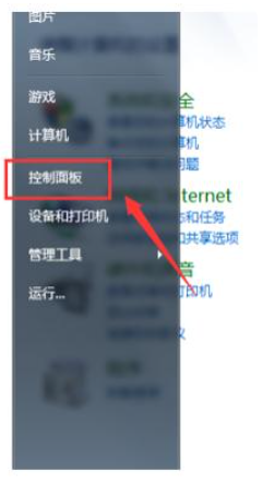2、在弹出的下拉菜单中选择“控制面板”并点击进行下一步操作。