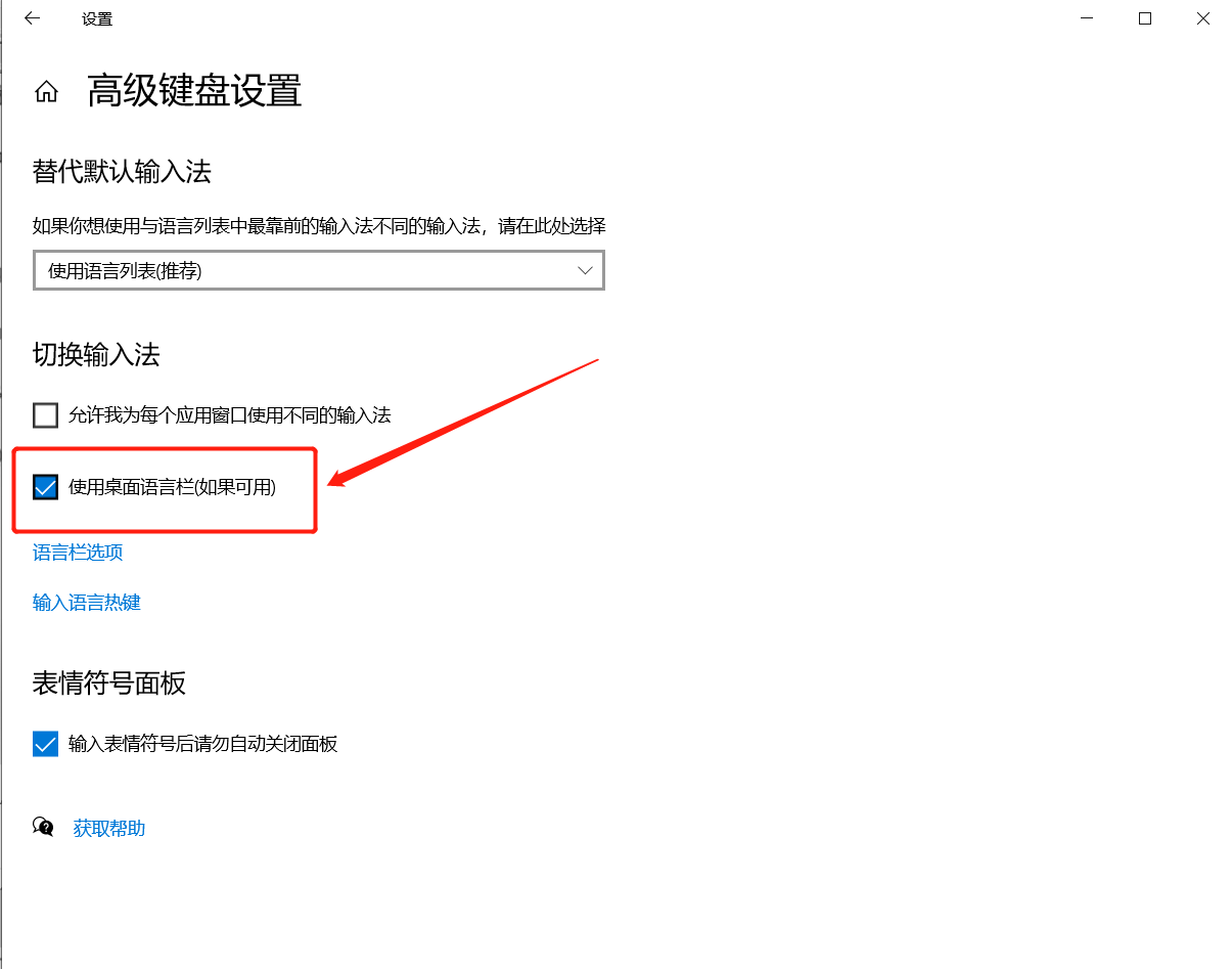 5、在弹出界面中,勾选”允许桌面语言栏(如果可用)“前面的框即可。
