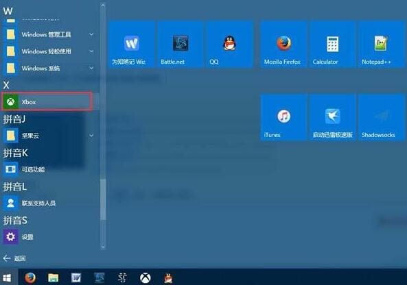 1、点开windows菜单栏,并在所有应用里找到xbox程序并将其打开,如图所示: