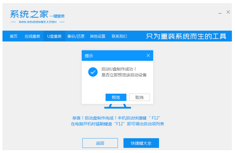 3、直到软件提示启动U盘制作成功后重启电脑。