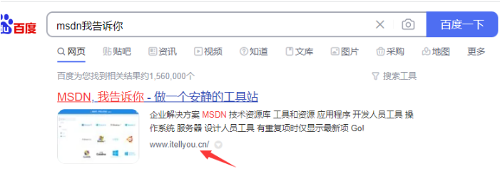 1、首先打开浏览器,在浏览器上搜索【MSDN我告诉你】,按照图示进入官网。