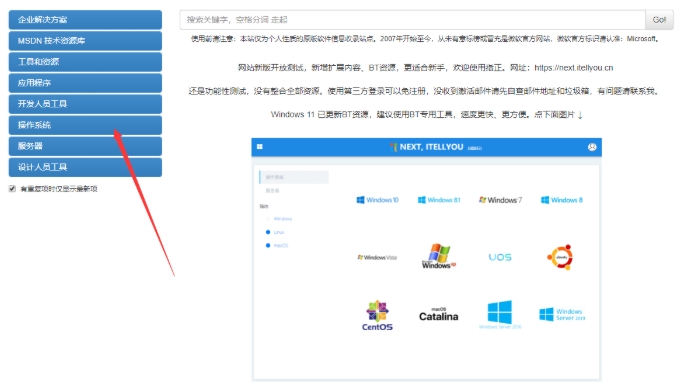 2、在msdn官网中,点击左侧的【操作系统】,进入到下载页面。