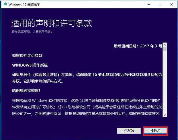 2、接受许可条款进入下一步。