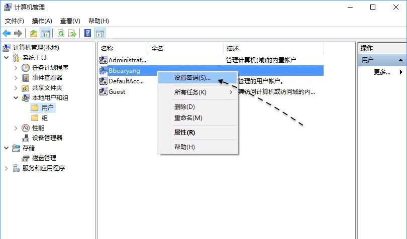 3.然后右键单击并选择“设置密码”选项;