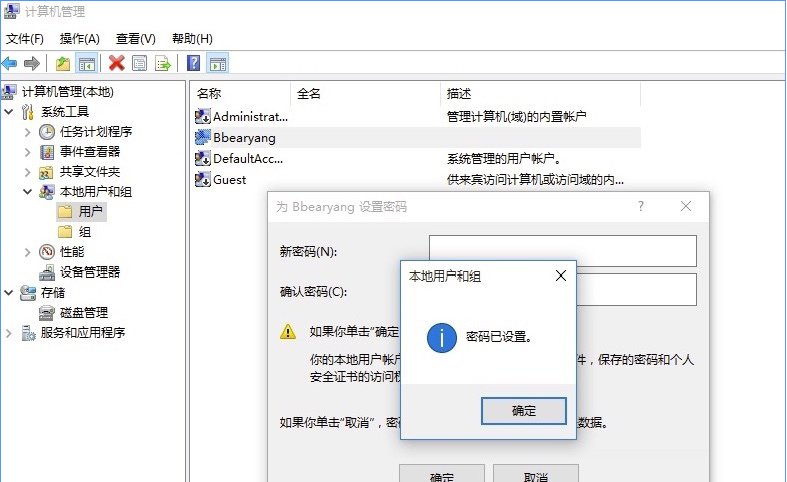 6、之后会提示我们密码已经设置好,点击“确定”按钮继续;