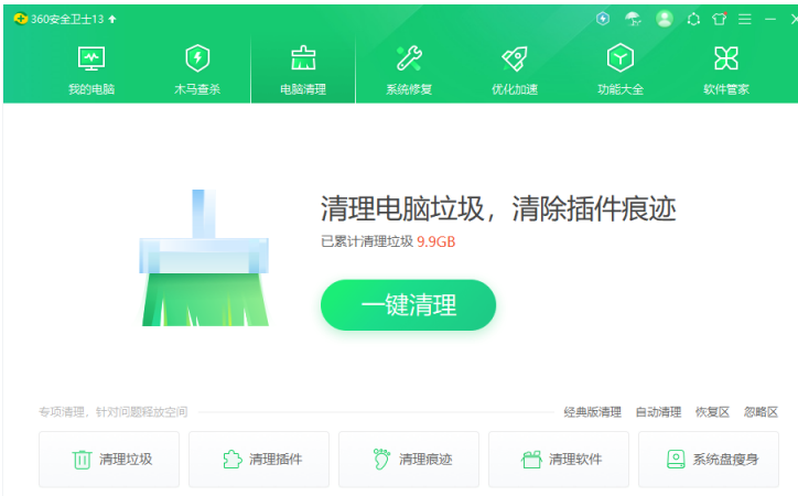 2、如果有安全软件,可以使用软件的垃圾清理功能。如电脑管家或者360安全卫士。