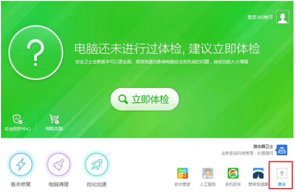 1、首先双击打开电脑上的360安全卫士,点击右下角更多进入。