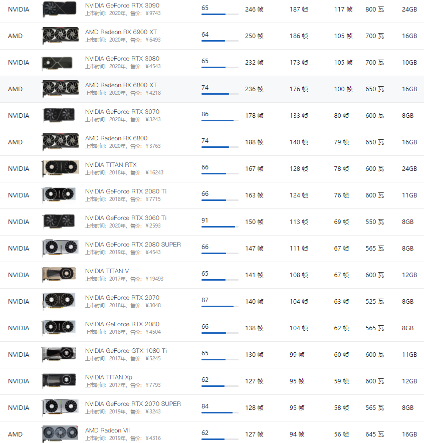 2021年显卡性能排名9月