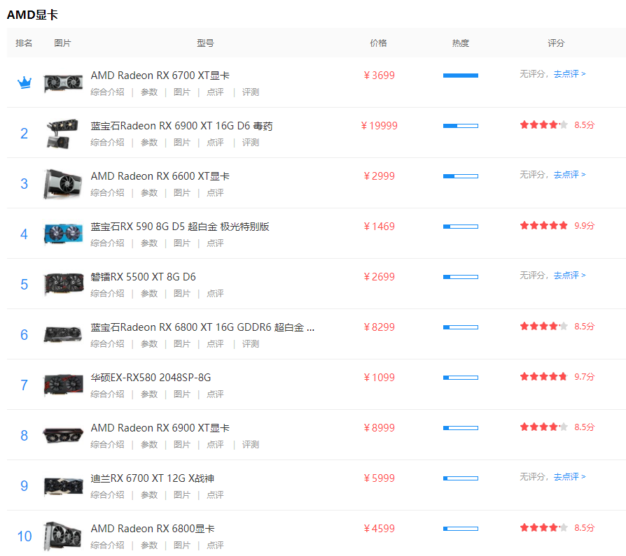 2021/08/12 AMD显卡排行榜AMD显卡哪款好2021十款热门AMD显卡排行榜