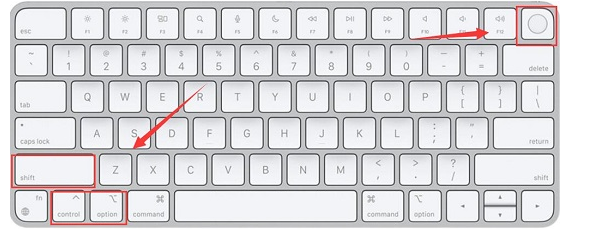 3、保持充电状态,按住“Shift+Control+Option+电源键”