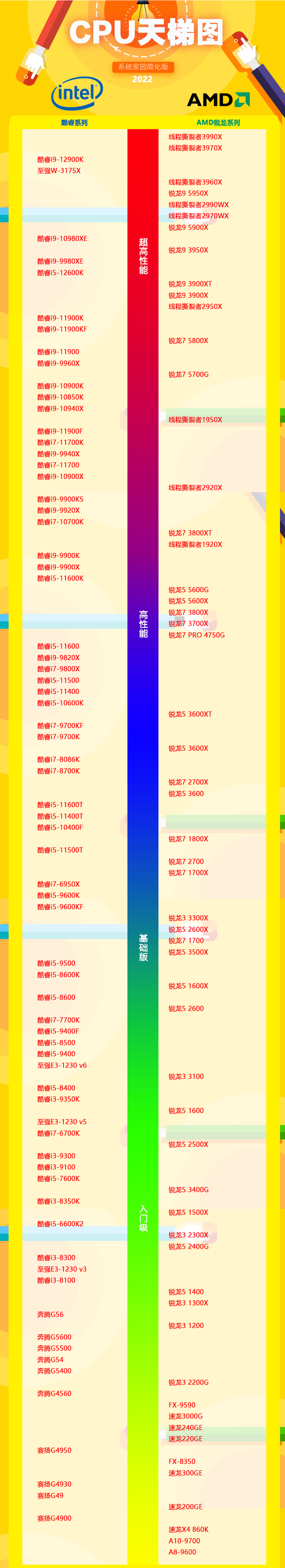 cpu天梯图2022最新版如下