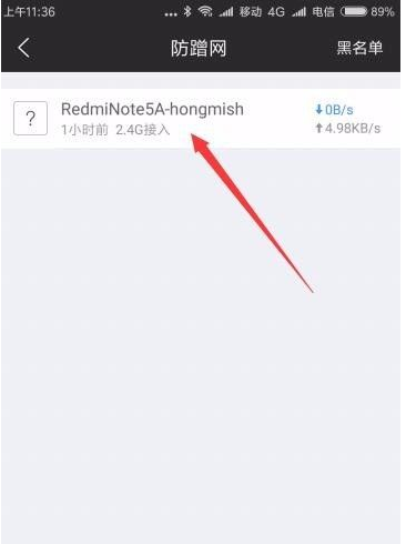 2.在打开的防蹭网页面中,选择不熟悉的设备