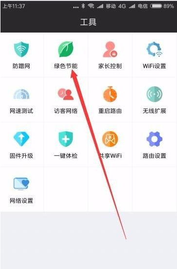2.点击“绿色节能”的图标,在打开的绿色节能页面中,把绿色节能的开关设置为关闭即可。
