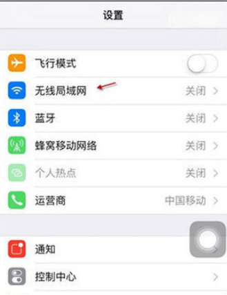 2、在设置列表中找到“无线局域网”一栏,如下图所示