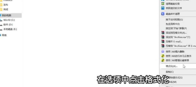 2、单击鼠标右键,在选项中点击格式化