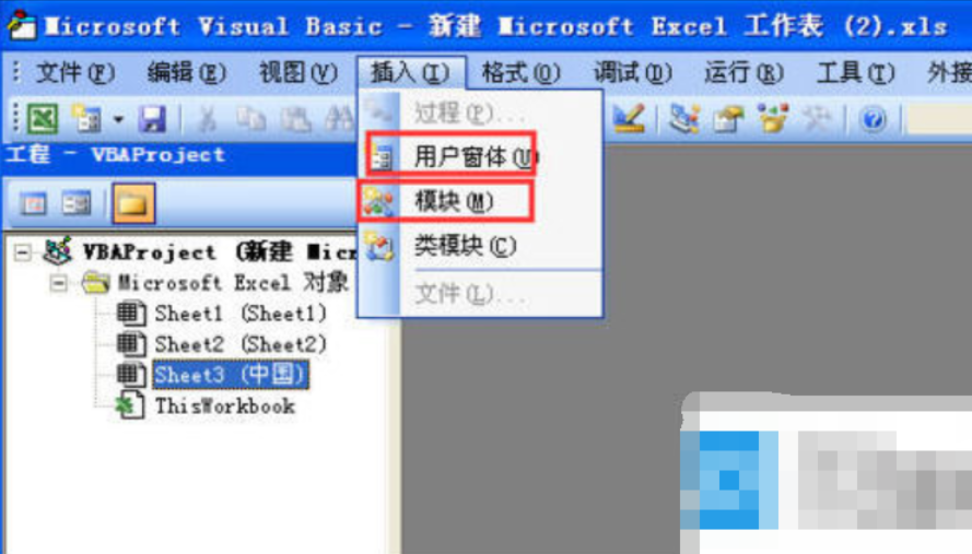 进入VBA界面之后,我们打开VBA代码框,打开方式有以下几种方式种: