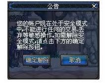 1.进入游戏界面后,如果看见提示则表示账号进入了安全模式,需要您验证密保进行解除。