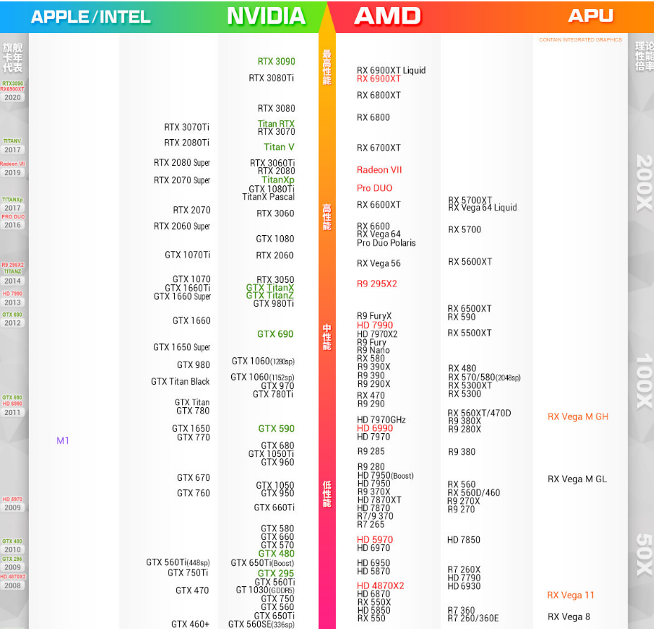 4、高端显卡:3070、3070Ti、3080、3080Ti、3090,适合大型游戏,2K高分屏畅玩游戏。