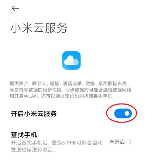 小米云服务免费开通的方法