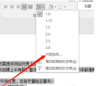 3.找到行和段落间距设置图标,你可以直接在这里选择行距。