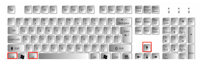 1、当出现屏幕被旋转情况时,最快捷的恢复方法是按键盘上的“Ctrl+Alt+↑(方向上键)”即可恢复桌面方向.
