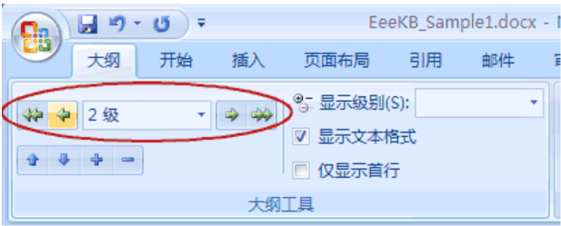 2、光标停在某个第一级标题上,左上角的下拉框拉开,选1级。同样,光标停在某个第二级标题上,下拉框中选2级。这样,把整个文档的结构给标注出来。