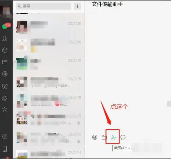 1、可以把电脑上的微信聊天窗口打开,点击聊天窗口的这个剪刀图标,就可以截图了。