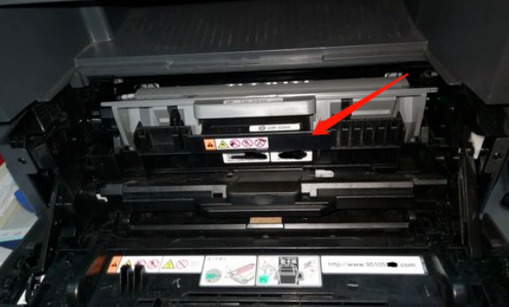 4、然后紧紧按住卡扣,拔出即可拿出旧墨盒。