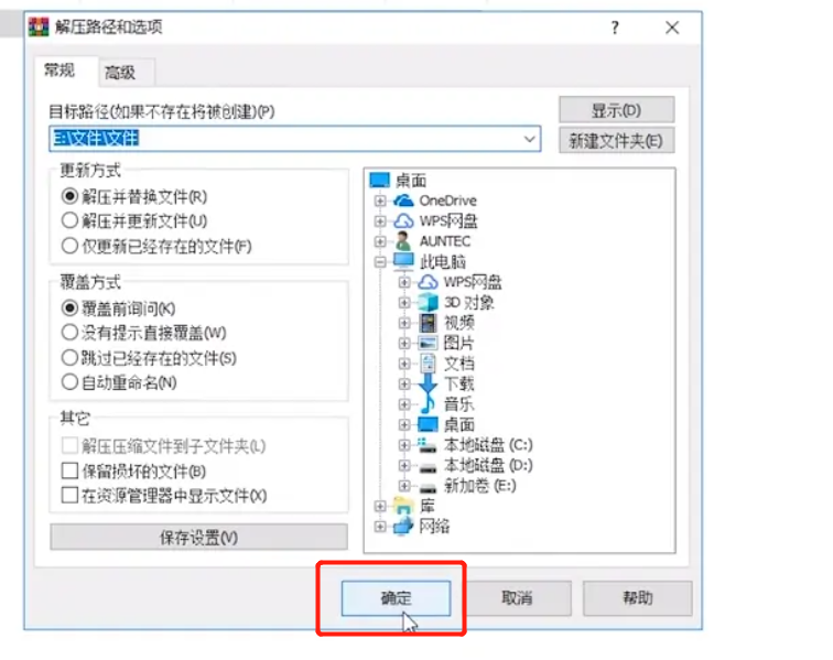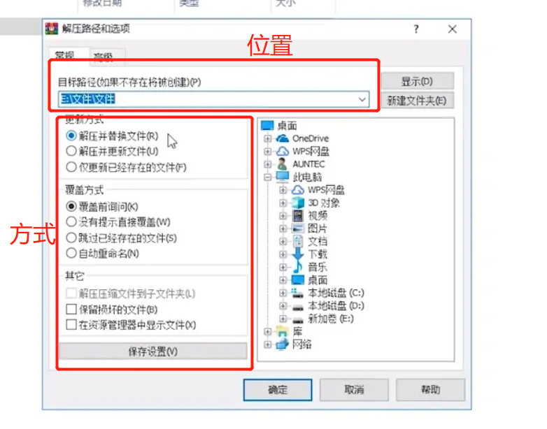 3、可以选择将解压出来的文件放在哪里还有解压的方式。