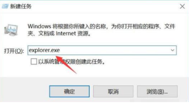 3.在对话框中输入“explorer.exe”按回车确定打开,就恢复正常了。