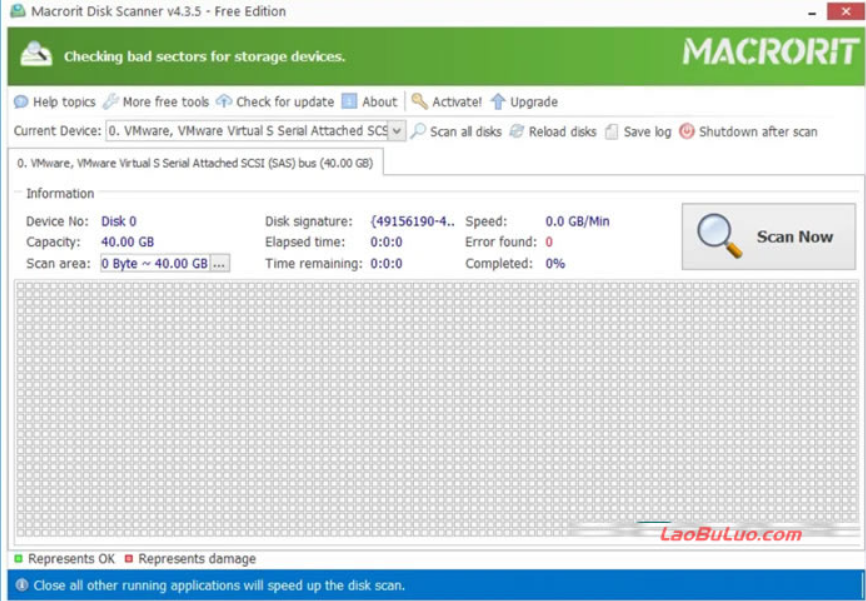 这款软件从名字可以看到是磁盘检查软件,主要用于扫描和查找硬盘驱动器中的坏扇区。 不仅用红色标记了坏扇区,而且还为我们提供了关于它发现的所有好坏扇区的详细且易于理解的日志文件。 如果您正在寻找可以扫描并在硬盘驱动器中找到坏扇区软件,那么Macrorit Disk Scanner还是适合的。